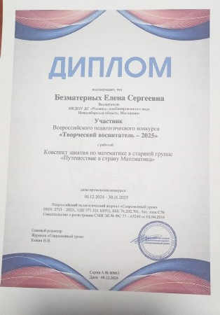 Воспитатель МКДОУ детского сада "Росинка" комбинированного вида