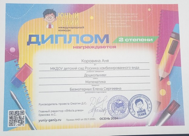 Воспитатель МКДОУ детского сада "Росинка" комбинированного вида