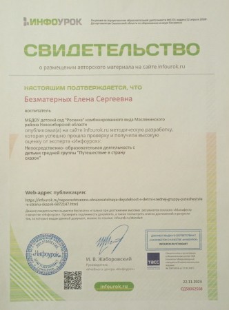 Воспитатель МКДОУ детского сада "Росинка" комбинированного вида