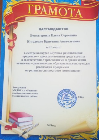 Воспитатель МКДОУ детского сада "Росинка" комбинированного вида