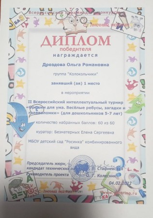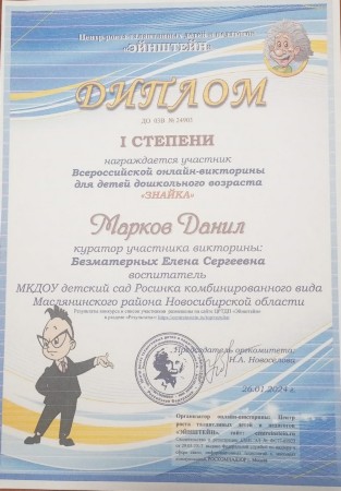 Воспитатель МКДОУ детского сада "Росинка" комбинированного вида